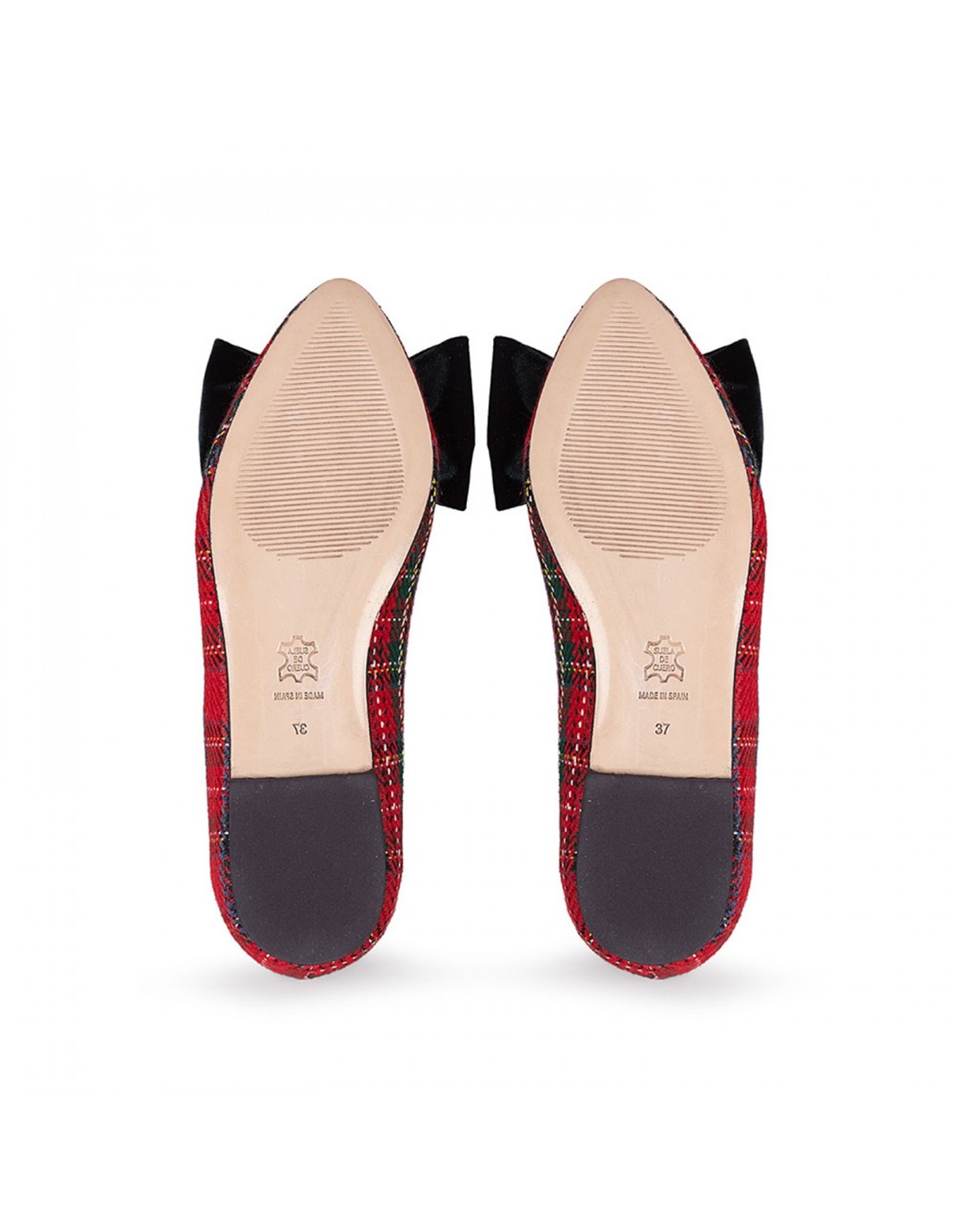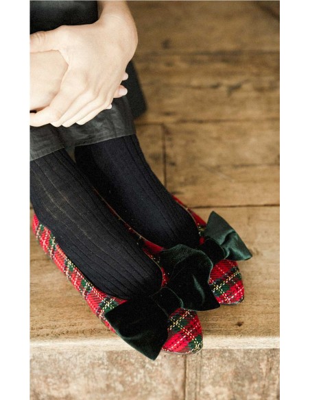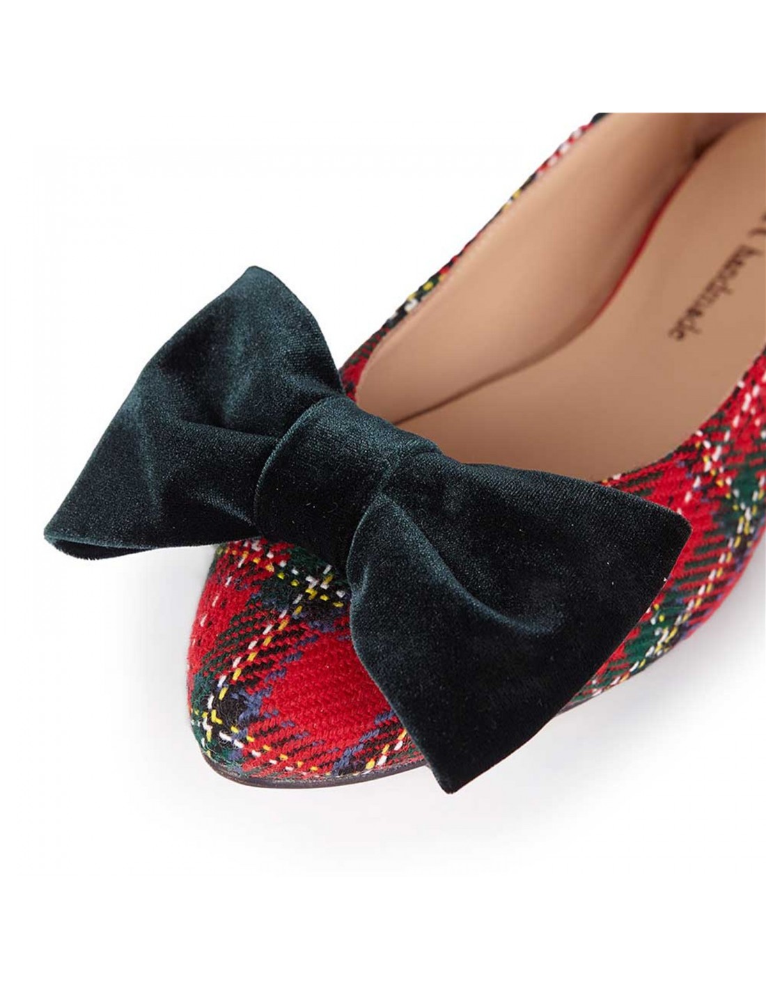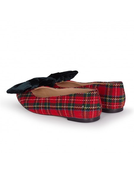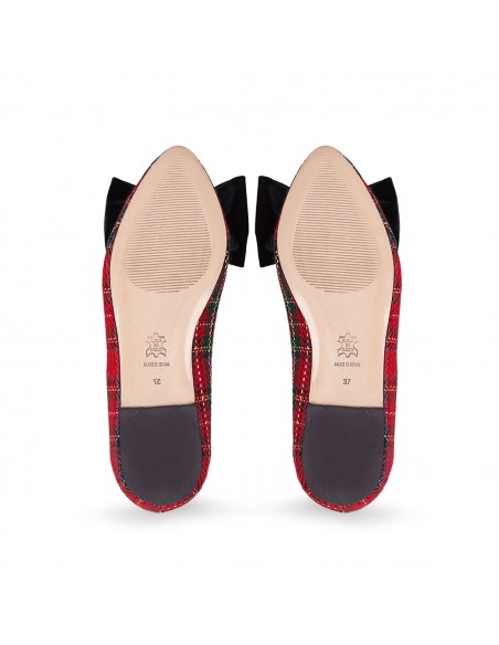 Bailarinas con estampado de cuadros rojos (tartán), un tejido atemporal que cada temporada vuelve a ser tendencia, incorporan un lazo de terciopelo verde, que aporta un toque sofisticado y festivo, ideal para looks de diario o para ocasiones especiales como la Navidad. Su estética se inspira en el clásico estilo británico, pero con el sello de la artesanía española, lo que las convierte en una pieza única y versátil. Las puedes combinar con múltiples outfits sin perder elegancia.