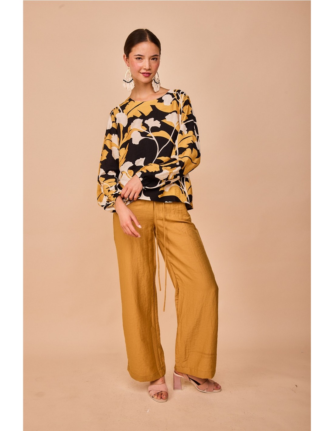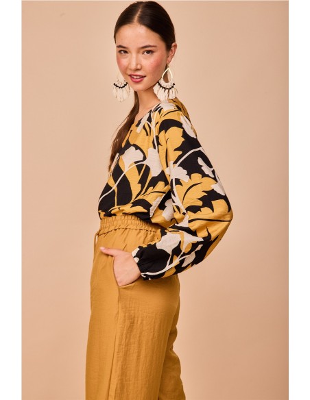 La camisa Puntal Flor Negra de Smile es una camisa de diseño moderno con cuello caja y mangas abullonadas, confeccionada para aportar un toque elegante pero desenfadado a tus looks. Su base en color negro con detalle floral la hace versátil y fácil de combinar tanto con prendas casual como más arregladas.