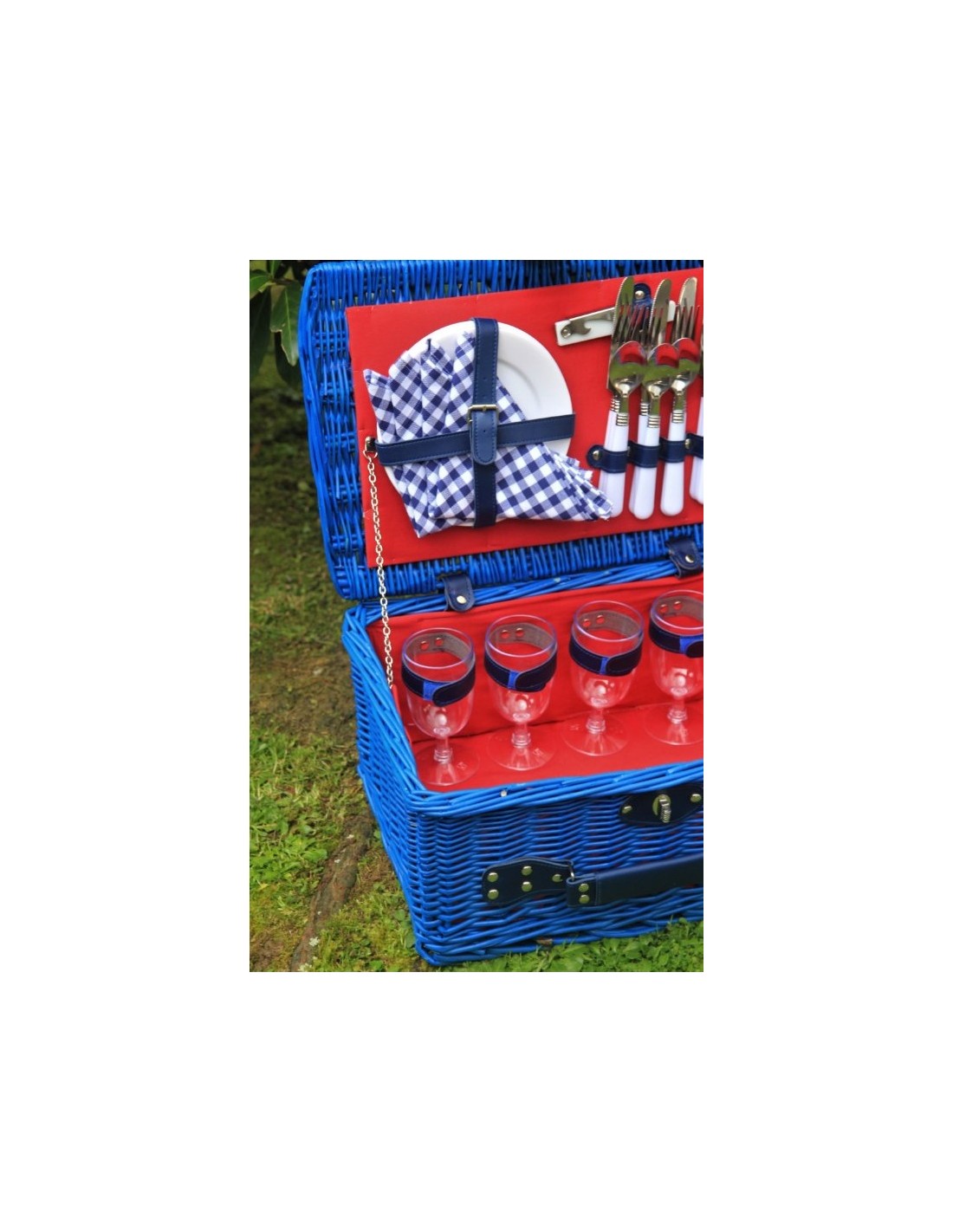 Preciosa y original cesta de picnic fabricada de manera totalmente artesanal, forro interior perfecta para disfrutar de forma diferente de desayunos, comidas, meriendas o cenas. En su interior hay productos de la mejor calidad: abrebotellas, salero y pimentero, dos juegos completos de plato de cerámica y cubiertos de acero inoxidable, vasos, servilletas y un espacio térmico especial en el que podremos mantener la temperatura de los alimentos. Sencillamente pefecta.