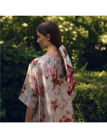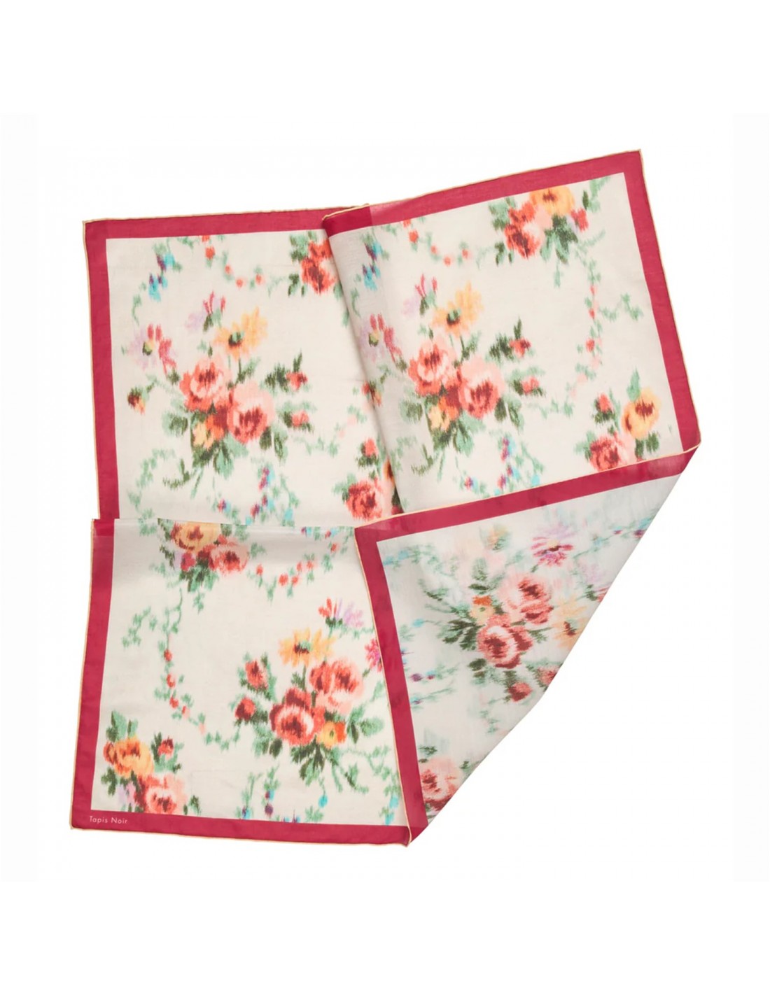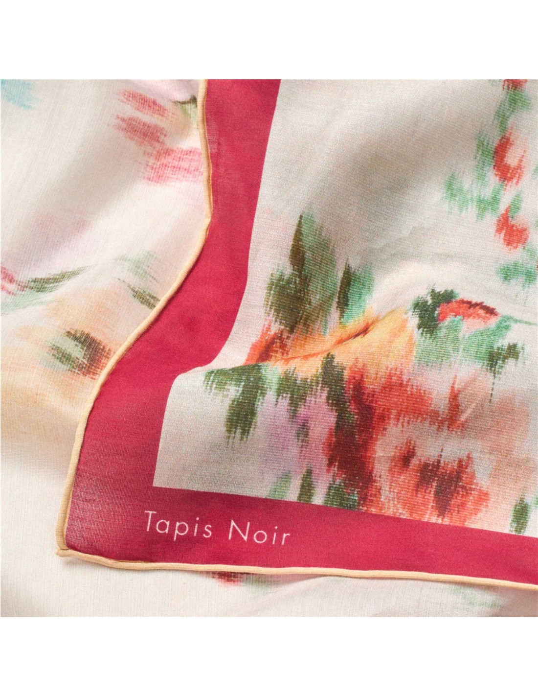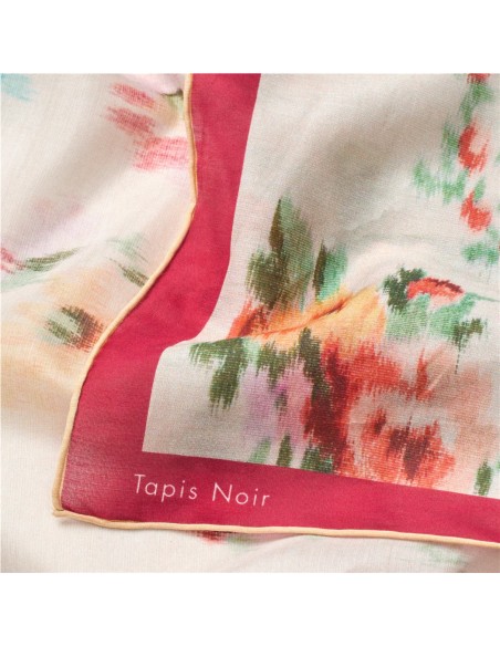 Pañuelo confeccionado en una suave mezcla de algodón y seda, su estampado proviene de una tela francesa del archivo de la marca de finales del siglo XVIII. Los bordes están enrollados y cosidos a mano. Si tienes dudas sobre el color, mira la foto plana del pañuelo, ya que es la más precisa. - 66 x 66 cm - 70 % algodón, 30 % seda - Solo limpieza en seco - Incluye bolsa protectoraTapis Noir