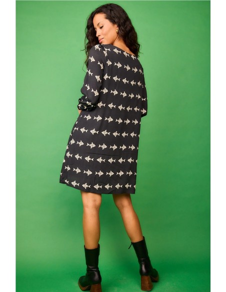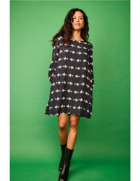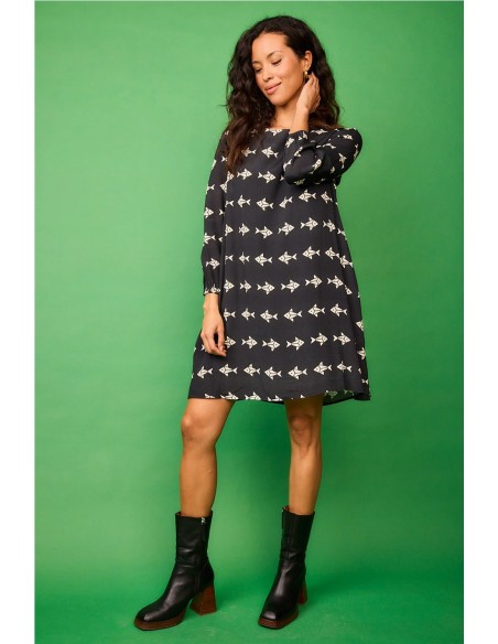 Este vestido destaca por su diseño femenino y favorecedor, con una silueta evasé, detalles románticos como las mangas abullonadas y un estilo muy versátil gracias a sus bolsillos y esa posibilidad de llevar o no cinturón. Es una prenda ideal tanto para ocasiones casuales como para eventos donde quieras destacar con un toque especial sin renunciar a la comodidad ni la originalidad, y única gracias a su edición limitada.